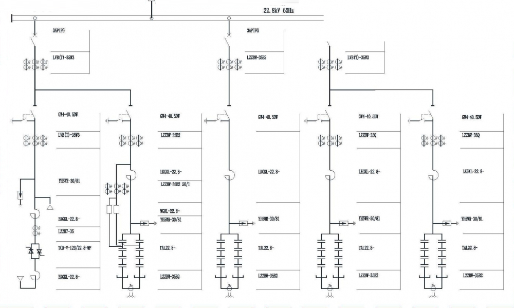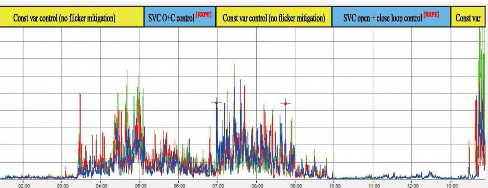 El sistema SVC se clasificó de la siguiente manera: de -8Mvar (inductor) a + 5Mvar (capacitor). Se diseñaron cuatro divisiones para filtros, 2/3/4/5 de acuerdo a los armónicos de la carga. El filtro de armónicos 2 fue diseñado como tipo C con el objetivo de reducir la perdida de energía activa.