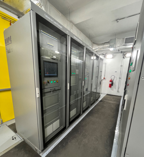 RXPE brindó un sistema STATCOM de conexión delta de 34.5 kV/150 Mvar, que utiliza la tecnología PP-IGBT, a la planta siderúrgica de Tenaris TAMSA en México a inicios del año 2024. Este dispositivo STATCOM, combinado con un conjunto de bancos de compensación de filtrado (H2+H3+H4) con una capacidad de compensación base de 110 Mvar, se implementó con la finalidad de dar solución a diferentes problemas de calidad de la energía, como fluctuaciones de voltaje, parpadeos y armónicos, durante las operaciones de los hornos de arco de alimentación superior (135 MVA) y dos hornos de refinación (24 MVA y 30 MVA) en la planta. La capacidad de cortocircuito de la red eléctrica de 230 kV en el lugar es de aproximadamente 4563 MVA. Antes de la instalación del sistema de compensación, el valor de parpadeo de corta duración PST del voltaje de la red, causado por la carga del horno, era aproximadamente de 3.80, y el valor de parpadeo de larga duración PLT alcanzaba 2.82. Según lo establecido en el acuerdo técnico, después de la puesta en funcionamiento del sistema STATCOM, el valor de parpadeo de corta duración PST no debe exceder 1.0, y el valor de parpadeo de larga duración PLT debe mantenerse por debajo de 0.8. Además, los parámetros relacionados con la calidad de la energía, como los armónicos y el desequilibrio de la red, deben cumplir con las normativas IEC y los estándares aplicables de la red eléctrica mexicana. El factor de potencia promedio en el lado de entrada de 230 kV debe ser superior a 0.95.